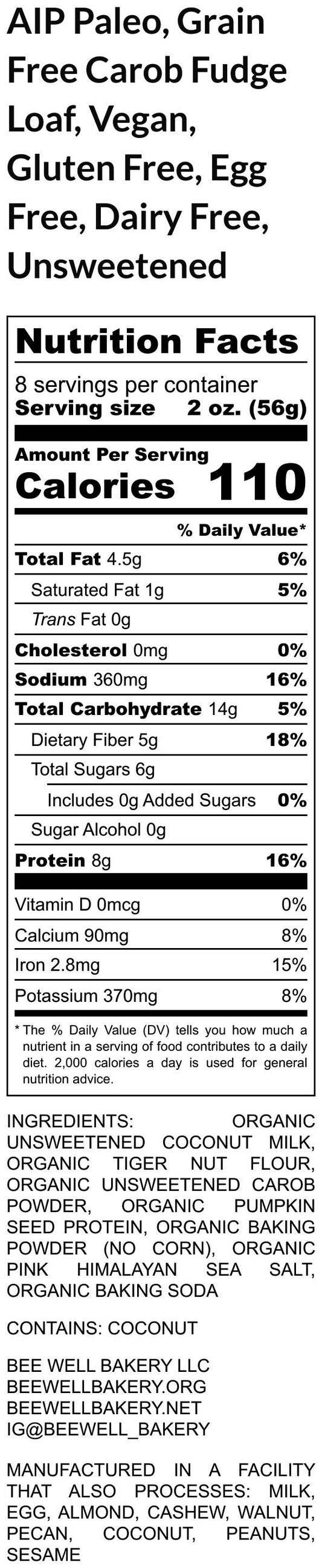 AIP Paleo Carob Cake, Bovine, Grain Free, Gluten Free, Tiger Nut, Dairy Free, Egg Free, High Protein, Autoimmune Protocol, Unsweetened Snack