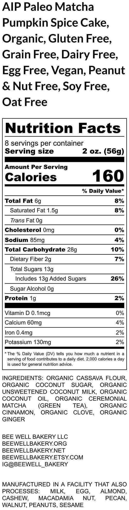 AIP Paleo Cake, Matcha Pumpkin, Gluten free, Dairy Free, Grain Free, Egg Free, Vegan, Nut Free, Autoimmune Protocol, Allergy Friendly Bakery